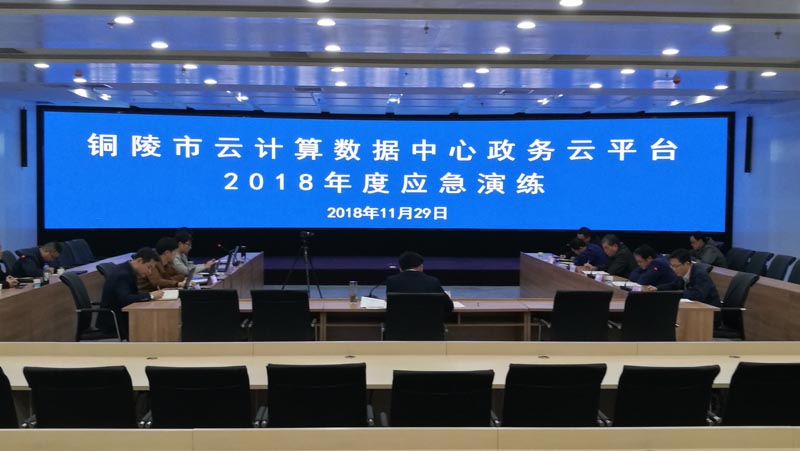 2018年11月29日“铜陵市云计算数据中心政务平台2018年度应急演练”在市政府信息办三楼大会议里成功演练。
