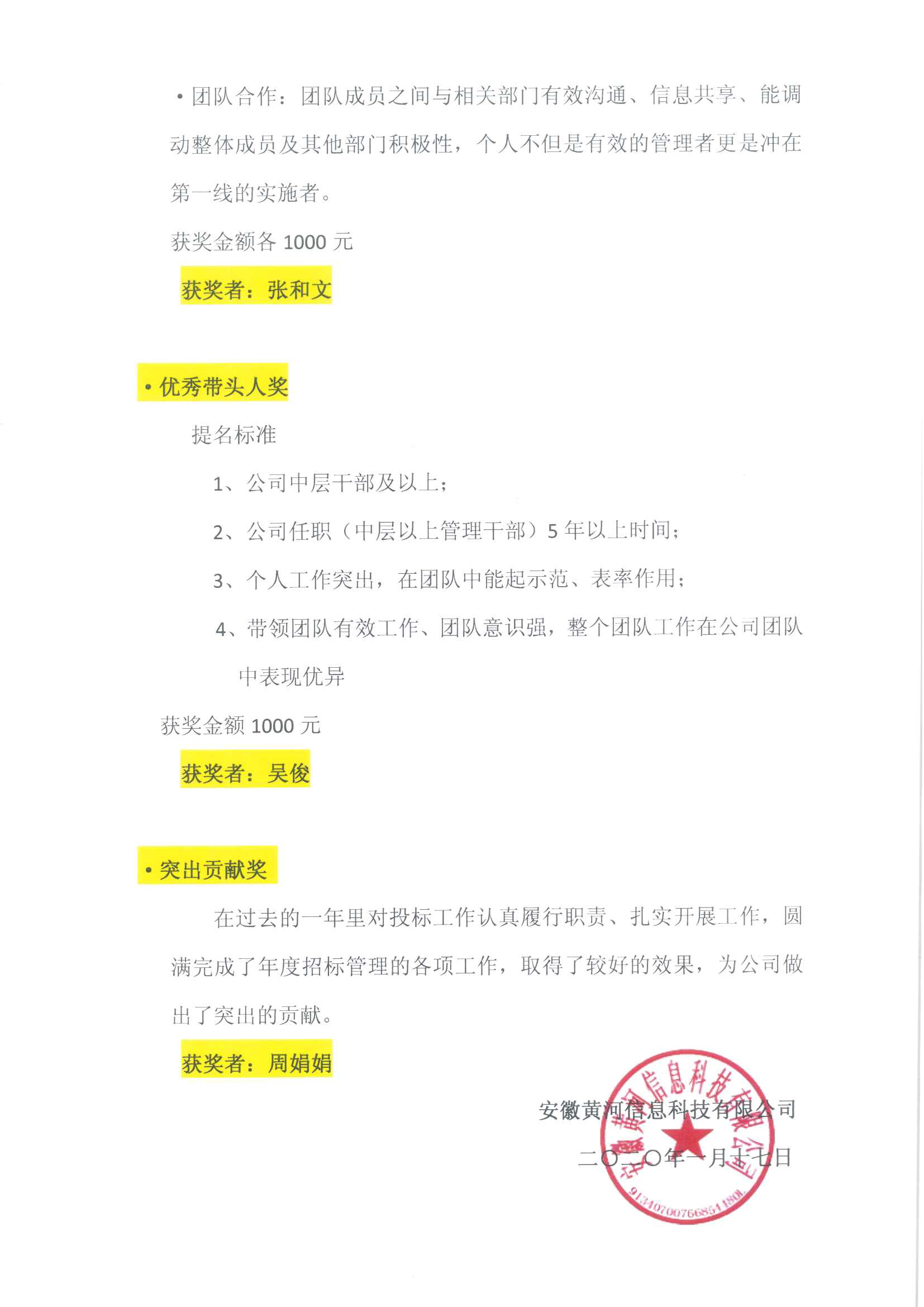 黄河科技关于表彰2019年度先进集体和个人的决定文件